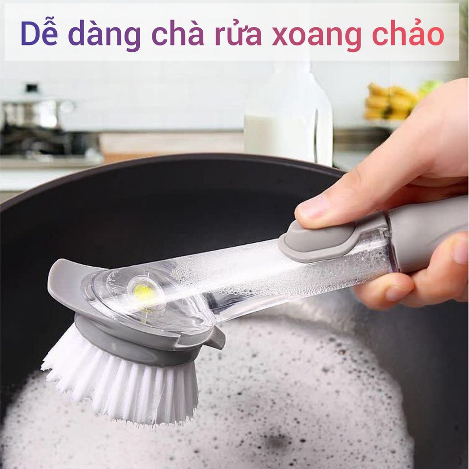 Thiết kế thông minh,có ngăn chứa xà phòng, tay cầm cọ có thể tháo lắp và thay thế tiện dụng