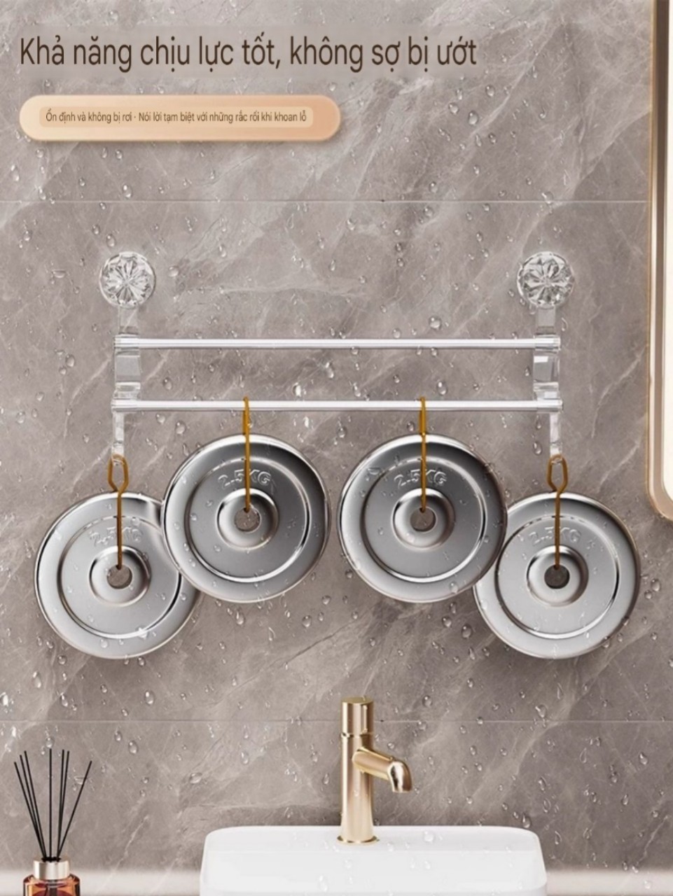 Giá treo khăn 2 tầng kiểu hít tường